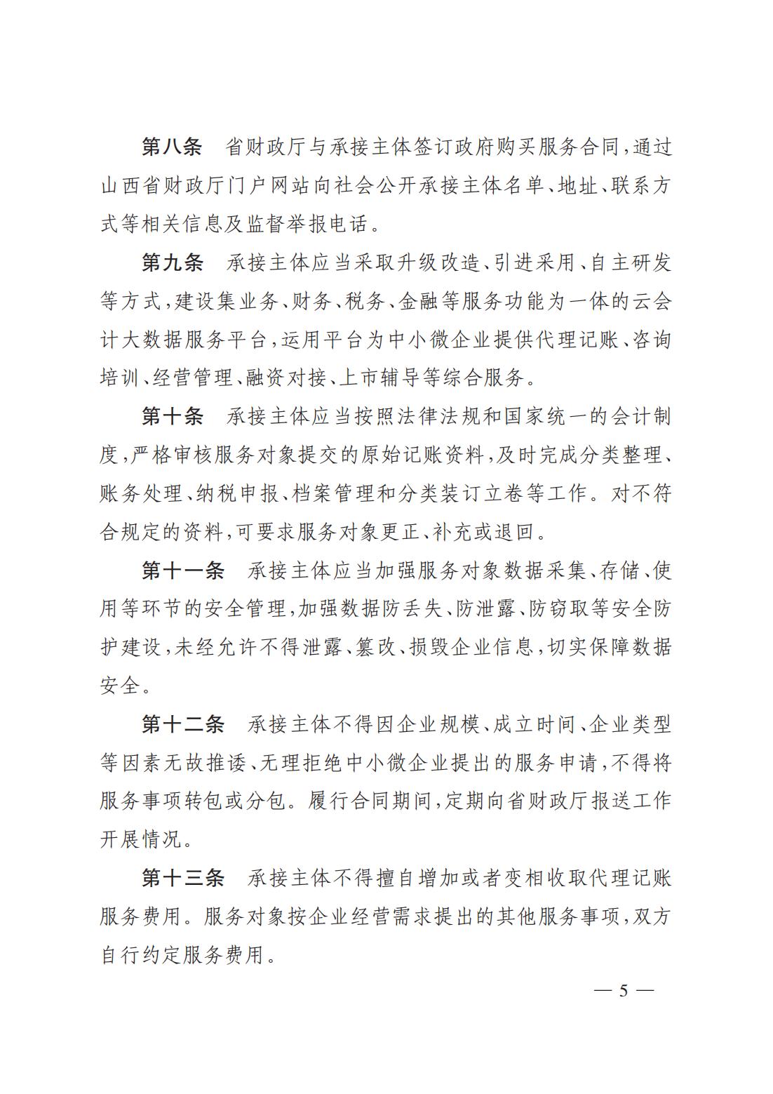 關(guān)于印發(fā)《山西省財政廳為中小微企業(yè)購買代理記賬服務(wù)實施細則(試行)》的通知